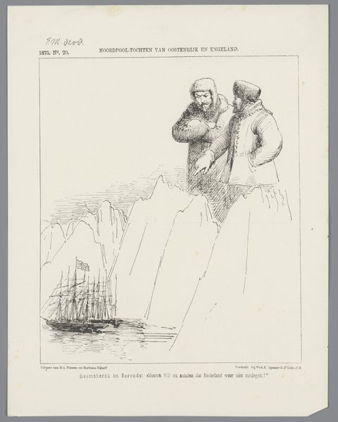 Editor: Here we have a print from 1872, "Spotprent met een forse Scheveningse vrouw als Venus," created by Johan Michaël Schmidt Crans. It depicts a stout woman wading in the sea. I find the contrast between her rather serious demeanor and the playful figures in the background quite striking. How do you interpret this work? Curator: The process by which this image was created and disseminated is key. Consider the use of pen and printmaking to replicate and distribute this image widely. This was not a unique object crafted by hand, but a mass-produced item meant for circulation. How does the artist use this technique to communicate about social ideas around labour and consumption in coastal communities? Editor: That's interesting. It feels almost like a precursor to modern meme culture, using a readily available medium to spread a message. Does the setting or the woman’s attire offer any clues? Curator: Certainly. Her attire tells a story about her social standing and the labor expected of women in Scheveningen at that time. What materials would have been readily available, cheap, and warm, and what would that signal to an audience? We should ask ourselves: how did images such as these reinforce ideas about gender, labor, and the value of individuals within the social structures of that particular region and period? Editor: I hadn't considered the connection between the image’s medium and its social commentary. So, it’s less about high art and more about everyday life, mass production, and how societal norms are disseminated. Curator: Precisely! Understanding art requires a close examination of how materials, techniques, and their associated contexts intersect to create meaning. That broader view helps reveal art's significance within specific cultural and economic systems. Editor: That is fascinating and opens up so many avenues for analysis! Thanks for sharing your materialist perspective with me, I'll have to think of artworks this way from now on.