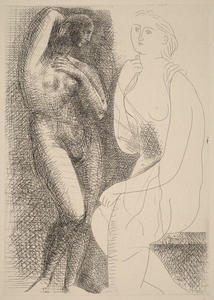 Jan de Bisschop made this etching, *Hurkende Venus*, in the 17th century. The artist created the image by drawing into a wax-covered metal plate, which was then submerged in acid. The acid bit into the metal where it had been exposed, leaving behind an incised line. This process allowed de Bisschop to create a print with incredibly fine detail. Looking closely, you can see how the etched lines vary in thickness and density. De Bisschop used these variations to create areas of light and shadow, giving the figure a sense of volume and depth. The labor involved in creating an etching like this is considerable; it’s a testament to the skill and patience required. Etchings like this were often made in multiples and collected in books for scholars to study, reflecting a growing interest in classical art and knowledge. This print sits at the intersection of fine art and craft, inviting us to consider the social and cultural significance embedded in the process of its creation.
