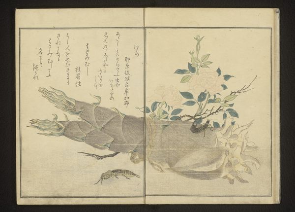 This diptych, featuring a red dragonfly and locust amidst pinks, was made by Kitagawa Utamaro, a prominent artist of the Edo period in Japan. Utamaro emerged during a time of relative peace and economic growth under the Tokugawa shogunate. His work embodies the aesthetic values of the merchant class, who were rising in social and economic power despite their low official status. The natural world depicted here reflects the interest in the environment and a move towards greater realism which was just starting to influence art institutions. Woodblock prints like this one were affordable, allowing a wider audience to engage with art. Utamaro's careful rendering of each insect and flower, as well as the integration of calligraphy, speaks to the sophisticated tastes of his patrons and comments on the social structures of the time. As historians, we can use resources such as period literature, economic data, and studies of artistic patronage to deepen our understanding of works like this and how art is always shaped by the society in which it is produced.