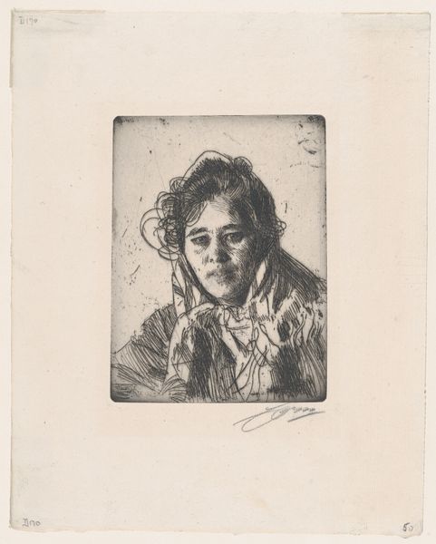 This small print of an unknown girl by Barbara Elisabeth van Houten uses etched lines to create a portrait that feels both intimate and a little mysterious. Look at how she’s built the form with these tiny, almost frantic marks. It’s like she’s feeling her way through the image, each line a little exploration. There’s a real tenderness in the way van Houten renders the girl’s hands, clasped together in her lap. They’re not perfect, but they’re full of character, and they tell a story of quiet contemplation. The texture of the paper itself becomes part of the piece, adding a sense of age and history. That scratchy line around the edge of the girl’s dress gives the whole image a sense of movement, a feeling that nothing is ever really still. It reminds me a bit of Paula Modersohn-Becker, another artist who wasn’t afraid to show the raw, emotional side of her subjects. Art is always a conversation, isn't it, reaching across time and space.