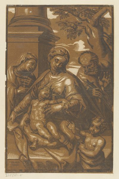 Editor: This drawing, "Saint John Preaching," was created by Anthonie Blocklandt around 1575 to 1580, using charcoal. The dramatic composition immediately strikes me; what draws your eye, looking at it? Curator: I am particularly arrested by the structural dynamic achieved through the chiaroscuro. Observe how Blocklandt employs light and shadow not merely to describe form but to create a hierarchical arrangement within the composition. Where do you perceive the apex of this light structure? Editor: Probably at the top, towards the figure at the center and right... almost illuminated from within. Is that intentional? Curator: Undoubtedly. The convergence of these illuminated zones guides the viewer's eye and contributes to the overall rhythm. Further, note the tension between the dynamism of the figures and the static quality of the medium. Does this tension resolve, in your opinion, or remain deliberately unresolved? Editor: I think it remains unresolved... giving the piece a sense of unrest. Does that contribute to the overall narrative, perhaps? Curator: Possibly, but as a formalist, my reading hinges less on narrative and more on the internal mechanics of the artwork itself. The dynamism, strategically opposed by the stasis, engenders an aesthetic tension that constitutes a significant portion of the work's communicative potential. Now, consider the deployment of line – its thickness, its direction – in relation to the emotional impact. How does line weight contribute to the reading of this composition? Editor: That's interesting... The heavy lines create an emphasis on certain figures. Curator: Precisely. And these denser concentrations of line create a visual weighting. This work displays Blocklandt's keen formal awareness. Editor: Thanks for showing me the work that way; it helped me notice aspects of the drawing that I hadn't considered before.