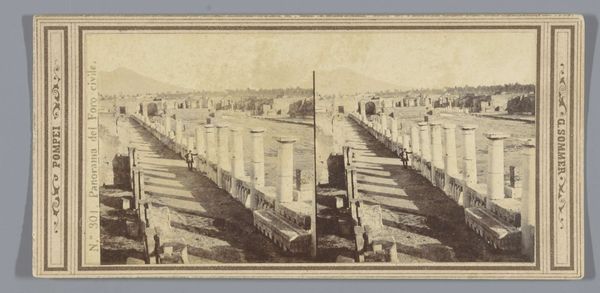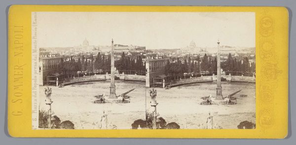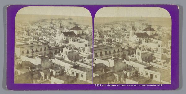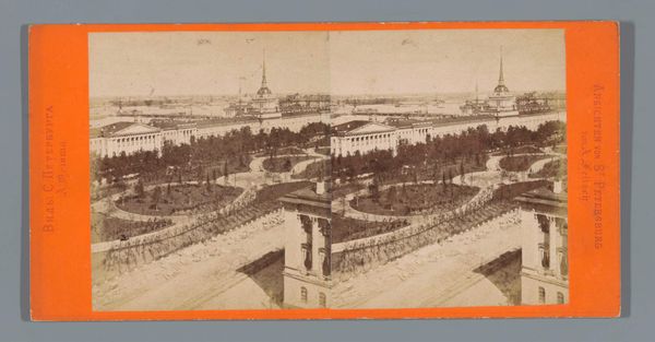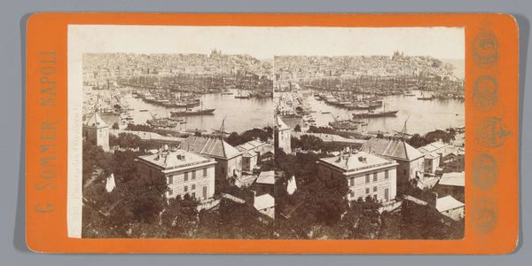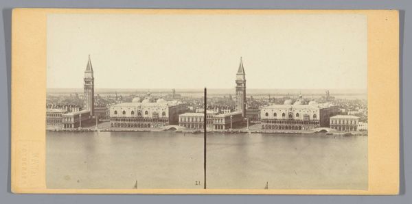 Curator: Before us we have a daguerreotype attributed to an anonymous artist, dating from 1857 to 1863. It depicts the Dolmabahçe Mosque in Besiktas, Constantinople, revealing a stunning panorama rooted in the style of Orientalist and Realist photography. Editor: The way the mosque sits there… pristine and untouchable. I can almost hear the call to prayer echoing across the water. There's a stillness about this, like a captured breath. The repetition adds another layer, maybe of memory, or a doubling of presence? Curator: The formal elements demonstrate a keen awareness of symmetry and perspective. Note how the photographer meticulously balanced the architectural forms against the open space of the harbor, utilizing the contrast between light and shadow to enhance depth and volume. It subtly reinforces Western fascination with Ottoman architecture. Editor: Fascinating, sure, but more than that, isn't there a yearning embedded here? Looking at a place through someone else's eyes always leaves a certain pang of… longing. Like wishing you were present there with all your senses, and being only halfway there. The cool tones feel elegiac; it's pretty heavy with nostalgia. Curator: Perhaps that stems from its success in applying nascent photographic technology to an Orientalist theme. The artist captured not merely an image of a mosque, but a complex interplay of cultural signifiers, inviting discourse on Eastern identity seen through a Western lens. Editor: I dig that… seeing something familiar made otherworldly by time and technique. But there's a simple power here too: a desire to pause the present, and save the feeling for later. Curator: Indeed. In this stereoscopic view of Constantinople we see the beginning of the tourist gaze. Editor: Beautiful and sad. All those journeys we can no longer make.