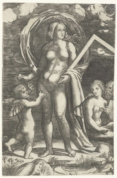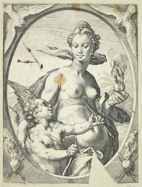 This print of Venus and Cupid was made in the late 16th or early 17th century by Jan Saenredam, using the technique of engraving. Think of the engraver as a kind of mechanic of the image. Using tools of steel, the artist incises lines into a copper plate. These lines hold ink, which is then transferred to paper through the pressure of a printing press. The material qualities of the print – its crispness, its fine detail – are all due to this intense, painstaking process. Look closely, and you can see how Saenredam has used a vocabulary of marks to describe the forms of Venus and Cupid: short, dense hatching to create areas of shadow, and longer, flowing lines to suggest the contours of their bodies. The engraver needs to be a master not just of representation, but of labor. In its own time, this image would have been seen as both art object and commodity, traded and collected by connoisseurs. By understanding its making, we can appreciate the tremendous skill involved, and also the print’s place within a wider world of production and consumption.