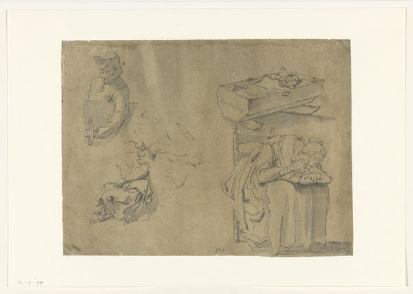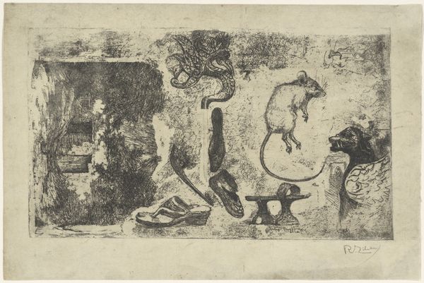 This is "Compositie" by Aat Verhoog, an evocative print currently residing in the Rijksmuseum. Verhoog, born in 1933, navigates the socio-political landscape of post-war Europe in his work. Here, abstraction serves as a powerful language, sidestepping traditional representation to confront deeper truths. The monochromatic palette and layered textures create a sense of depth, inviting us to reflect on memory and history. The composition hints at figures and objects, yet resists definitive form, mirroring the fluid and often elusive nature of identity. Consider the emotional weight of this ambiguity. How does it feel to encounter a work that gestures towards the familiar, yet remains tantalizingly out of reach? Perhaps Verhoog is prompting us to acknowledge the subjective filters through which we perceive the world, and the stories we tell ourselves about who we are. "Compositie" becomes a space for us to question, to feel, and ultimately, to connect with the unspoken.