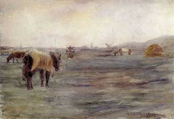 Eugène Boudin captured these Laundresses with oil on canvas, presenting a scene laden with the weight of labor. The women, bent at the river's edge, are performing the timeless task of washing clothes, a symbol of purification. These figures recall images of nymphs or water spirits, deities associated with springs and rivers, but here, they are rendered as the working class. Consider, though, how their bent postures and the communal nature of their work echo motifs found in ancient depictions of labor and servitude. The stooping posture appears across various cultures, symbolizing humility, burden, or a connection to the earth. The act of washing itself transcends mere cleanliness; it is an act of renewal, a cleansing of both the physical and the spiritual. Boudin subtly engages with our collective memory, tapping into the primal connection between water, cleansing, and renewal. The women's dedication evokes a deep, subconscious recognition of labor’s dignity, engaging viewers on a level that is both profound and timeless.