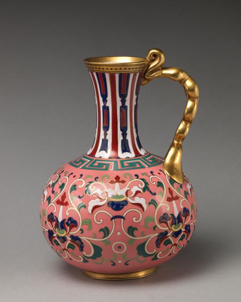 This covered potpourri vase was made in the late 19th century by Ott and Brewer, a company that operated during a period of immense social and economic transformation. As industrialization accelerated, objects like this vase became emblems of status and taste. It reflects the Victorian era’s fascination with ornamentation and display and offered a stark contrast to the increasingly mechanized world. The potpourri within would have served to sweeten the air, masking the less pleasant odors of urban life, and would have been an important part of the domestic experience. Consider how gender roles of the time are implicated in such an object. The creation and maintenance of a beautiful home were often considered a woman's domain, making this vase not just a decorative item but a symbol of feminine identity and domestic prowess. The vase’s delicate floral motifs and pastel colors further emphasize its connection to notions of femininity and refinement. It is a tangible artifact of a bygone era.