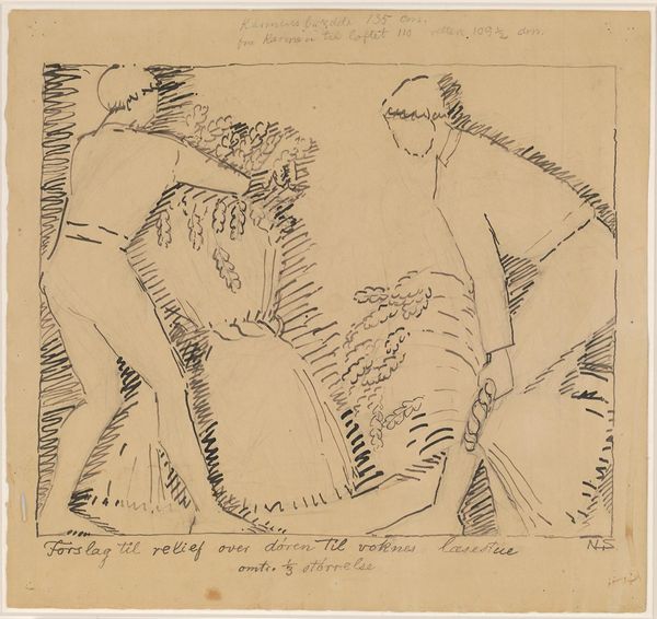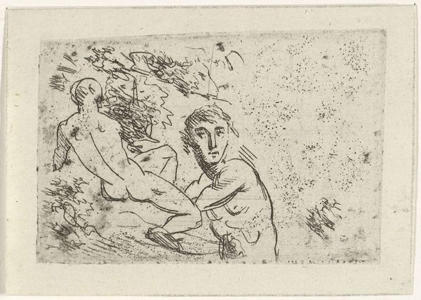 Ernst Ludwig Kirchner made this etching, 'Girls Playing in the Woods', and honestly, I'm not sure exactly when, but it looks to me like it was made with a kind of furious, jittery energy. The scratchy, almost frantic lines, especially in the trees, are really interesting. It's like he's trying to capture the feeling of being in the middle of the woods, with all the crazy angles and textures, rather than just drawing what he sees. Check out the way the lines around the figure on the right almost vibrate, creating a sense of movement and unease at the same time. Kirchner isn't going for smooth, polished perfection here, it's all about rawness and immediacy. The way he simplifies the figures reminds me a bit of the woodcuts of Edvard Munch, especially in the faces, they are both trying to distill human emotion down to its most essential form. For Kirchner, art wasn't about answers, but about creating a space where those questions could be asked, over and over.