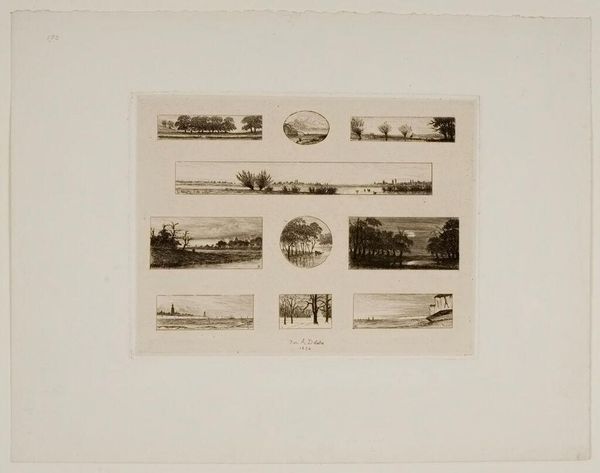 Curator: Elmerich's "View of the Oise at Auvers," housed here at the Harvard Art Museums, presents a tranquil riverscape rendered in delicate lines. It evokes a sense of stillness, doesn't it? Editor: It does. The near monochromatic palette and detailed etching almost convey a feeling of restrained grief, a somber contemplation of nature. Curator: The social context of landscape art often reflects a yearning for simpler times, perhaps as a reaction to industrialization, or even political upheaval. Elmerich could be commenting on the changing environment. Editor: And the choice of Auvers is telling. This area attracted many artists, like Van Gogh, seeking refuge and inspiration. It was a community grappling with its own identity. Curator: I appreciate how the composition draws attention to the relationship between the land and water, a mirrored reflection that also invites viewers to question our own connection to the land. Editor: Exactly. The lack of vibrant color directs us to reflect on the quiet beauty of the scene, a beauty that so often goes unnoticed. Curator: Well, it reminds us that art is never created in a vacuum, but emerges from specific cultural, social, and political circumstances. Editor: Indeed. The piece quietly urges us to consider the broader context surrounding its creation and its presence here today.