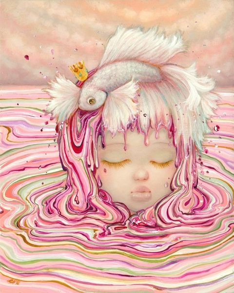 Camilla d'Errico made this, I'm guessing in the twenty-first century, Sunny Side Up, with what looks like colored pencils or maybe thin paint. The surface is super smooth and precise, not thick at all. You can almost feel the waxy texture of the colors. D'Errico really takes her time, layering the colors in a way that feels almost meditative. Look at the background: it’s like she’s creating a whole world with each little stroke. I love how the rainbow spills out of the egg yolk. It reminds me of the kind of surprising color combinations you see in Lisa Frank’s work, but with a softer, more surreal vibe. This kind of image-making reminds me that art doesn’t always have to shout to be heard. Sometimes, it's the quiet, meticulous gestures that speak the loudest.