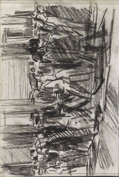 Curator: This intriguing pencil sketch from 1921-22 by Isaac Israels is entitled "Groep zittende figuren, mogelijk een gamelanorkest," which translates to 'Group of seated figures, possibly a gamelan orchestra'. It's part of the Rijksmuseum collection. What strikes you initially about this work? Editor: My first impression is one of tentative energy. Like a fleeting memory or half-heard melody. The composition feels loose, like the artist was capturing a moment before it vanished. The figures are almost swallowed by the tonal atmosphere. Curator: I find it fascinating how Israels used a simple medium, pencil, to evoke a sense of depth and movement. The repetition of lines creates an almost vibrating energy, typical of modernist movement which was about feeling, emotion and not just strict depiction. The seated figures merge into their surroundings. This blending mirrors, perhaps, how the individual performers contribute to a singular musical harmony. Editor: Precisely. And notice how he subtly suggests forms without fully defining them. That creates a beautiful ambiguity. Gamelan music itself, with its layered percussion and resonant melodies, creates a similar sonic ambiguity, inviting listeners to lose themselves in the sound. Do you think he meant to evoke this sense of immersion? Curator: Given Israels' modernist sensibilities, I'd say absolutely. The vagueness adds to that subjective quality and encourages the viewer to actively participate in creating the narrative, perhaps even filling in the gaps with their own memories of music and shared experience. Editor: The repeated visual motifs—the curves of the instruments, the hunch of the figures' shoulders—create a kind of visual rhythm, doesn't it? Each figure blends into the next. In a way, he reduces individuals to part of one symbolic entity. Curator: Exactly. Israels masterfully captured the transient beauty and communal spirit of music. You almost get the sense that this is less about rendering specific people and more about depicting what they, together, created and what that represents on its own, with its own kind of beauty. Editor: A beautiful summary. This artwork, I think, embodies the power of suggestion. It's a fleeting, beautiful reminder that true art often lies in the impressions we make rather than the details we meticulously render.