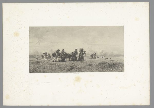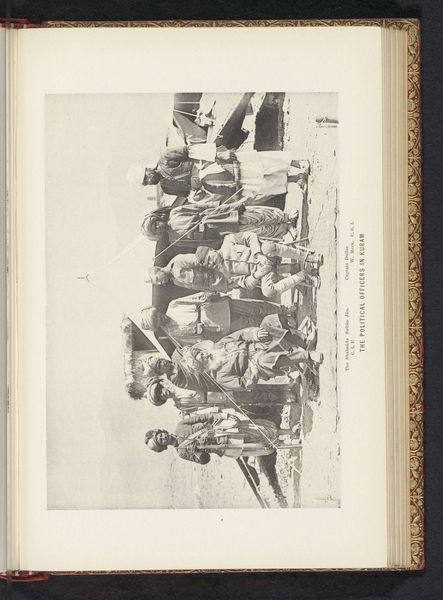 This photograph, "Peace or war? Jirga of Massuzai Orukzai," by Frederick Saint John Gore captures a moment laden with tension. Notice how the composition divides the scene horizontally: the lower half is dominated by figures gathered near a tent, while the upper half features a stark, open landscape punctuated by distant mountains. The photograph's formal structure invites a reading where elements of potential conflict and resolution coexist. See the rifles held by the figures – vertical lines that introduce a sense of unease and stand in contrast to the seated postures of the men, which suggest deliberation and potential agreement. The tent serves as a focal point. It is a space for negotiation, literally framing discussions of peace and war. The photograph, with its careful balance of opposing elements, presents a semiotic challenge. The arrangement of figures and objects creates a visual discourse on the precarious balance between conflict and resolution. The open-ended title acknowledges that the meaning remains unresolved, leaving us to contemplate the uncertain outcome of this tribal assembly.