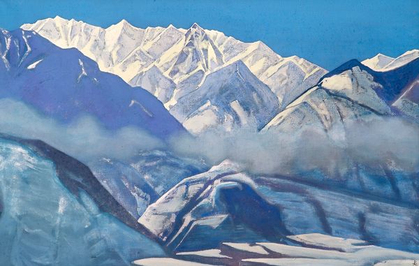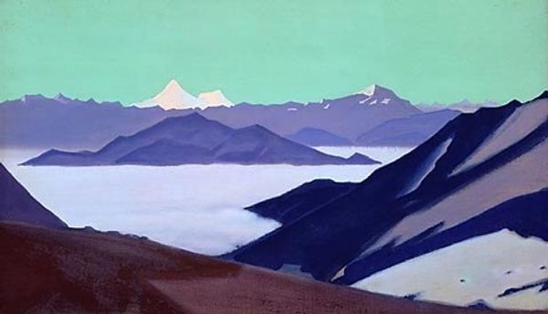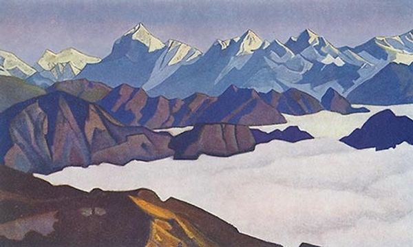 Nicholas Roerich painted Kuluta with tempera sometime in the early-mid 20th century, using a pared down palette that echoes the cool tones of the mountain range depicted. It’s so architectural! The geometry of the peaks has this incredible sharpness, each plane of colour next to the other, and the shadows are like facets of a crystal. There's this interplay between the solid forms of the mountains and the ephemeral nature of light and shadow. I keep getting drawn to the lower left, where Roerich used horizontal strokes to depict a kind of frozen lake, or river. They almost vibrate with a subtle energy, contrasting with the more static, vertical thrust of the mountains. It's like he's capturing a moment of transformation, where the solid ground meets the fluidity of water. You can see parallels with someone like Lawren Harris, who was also painting landscapes with a kind of spiritual intensity at this time. Both artists were interested in how the landscape can reflect inner states of consciousness. I think it’s interesting how they both chose the landscape as a vehicle for exploring these bigger questions.