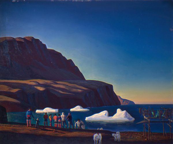 John Atherton made "The Black Horse," an oil on canvas, at an unknown date. There is so much going on, right? I’m immediately drawn to the contrast between the soft, blended colors of the sky and the mountain, and the rough textures of the wood structures. The subdued palette creates a dreamlike atmosphere, but the stark, almost brutal, construction interrupts that serenity. Look closely at the horse; the paint is applied so smoothly, almost masking the brushstrokes, while the surrounding landscape and structures have a definite, almost violent, texture. This push-and-pull between control and chaos is something I play with a lot in my own work, that tension between what you want to say and how the materials push back. This reminds me a little of de Chirico's surreal landscapes, but with a distinctly American sensibility, like maybe Edward Hopper went to the moon. It’s a landscape that feels both familiar and utterly alien. And that horse? What's his story? It’s a painting that invites more questions than answers, and I love that!