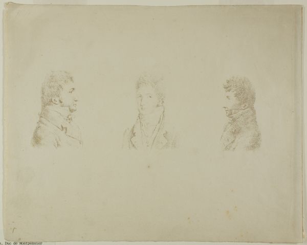 Editor: This lithograph, from 1838, features portraits of Ole Kollerød, Sidse Marie, Tømmer Lene, Peter Chr. Knudsen, and Ole Hansen. The starkness of the print, along with the subjects' serious expressions, creates a very austere feeling. How do you read this work, focusing on the lithographic technique and arrangement of figures? Curator: From a formalist perspective, I find the visual relationships between the figures compelling. The arrangement into what appears to be a matrix dictates my gaze up and down, left and right, so that I consider all of the sitters to have equivalent representational importance. Consider the crispness of the lines achieved through lithography: How does the use of line and the stark contrast affect the way you perceive their individual characters? Editor: I see what you mean; there's no hierarchy. The light seems evenly distributed, which prevents dramatic shading that might create more character. But look at the line quality used around the faces. Each face shows tiny hatches and details. Does this subtle detail contribute to a kind of restrained realism despite the overall flatness? Curator: Precisely! The meticulous application of hatching creates form, subtly hinting at depth. The arrangement, in a way, reminds one of display. We must remember that form always dictates how the artwork functions, both conceptually and aesthetically. Editor: So, by focusing on the formal elements—the composition, the use of lithography, the lack of dramatic light—we can better understand the artwork's restrained yet observant depiction of these individuals. Thank you for shedding light on how these techniques work. Curator: A worthwhile exercise. Through this lithograph we have a matrix that presents various personages. In sum, each discrete presentation contributes to a larger discourse of character and portraiture.