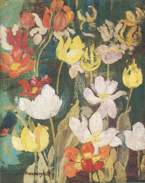 Vudon Baklytsky’s "Floral Macrame" is a riot of color made with oil paint, sometime during his lifetime. The mark making has this all-over quality, like a decorative textile where no area is less important than any other. There’s a real physicality to the surface. The paint is applied with a kind of scumbling technique, where the brushstrokes build up this almost crusty, tangible texture. I'm especially drawn to the way Baklytsky renders the flowers; notice how some of the petals seem to catch the light, while others recede into shadow, creating a sense of depth and movement. It's as if the flowers are constantly shifting and rearranging themselves before our eyes. Baklytsky's work reminds me a little of Chaim Soutine. Both had this impasto style and a willingness to let the paint do its thing. And just like Soutine, Baklytsky embraces ambiguity, inviting us to get lost in the texture and color without necessarily needing to decipher a fixed meaning.