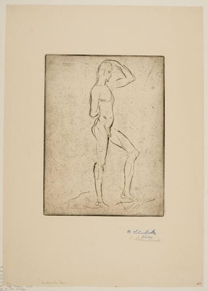 Editor: This is Wilhelm Lehmbruck's "Sketch of Two Nude Figures". The delicate lines and grayscale tones give it a somber, almost grief-stricken mood. What do you see in this piece? Curator: I see the weight of early 20th-century anxieties. Consider Lehmbruck's context: He witnessed firsthand the horrors of World War I. How might that trauma manifest in his representations of the human form? Editor: Maybe the slumped posture and averted gaze of the figure suggest a loss of hope or innocence? Curator: Precisely. It reflects the post-war disillusionment and the questioning of traditional societal structures. This piece invites us to confront the psychological impact of conflict and the vulnerability of the human condition. Editor: I hadn't considered it in light of the war, but it makes the piece so much more powerful. Curator: Art is always a product of its time. Understanding the context is key.