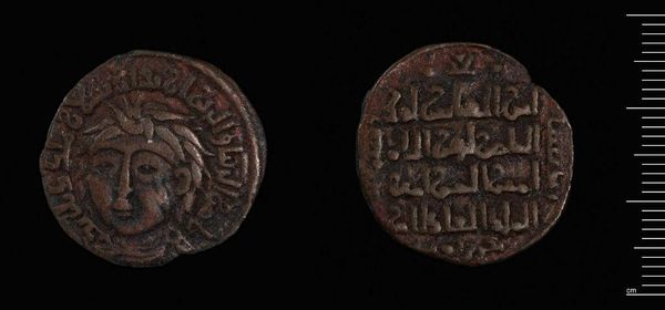 Editor: This is a copper dirham of Nasr al-Din Artuq Arslan. What strikes me is how a simple coin can carry such a powerful, albeit aged, message. What story does it tell you? Curator: Consider the act of minting itself – a sovereign act, claiming power. How did identity intersect with economic power in 12th-century Mardin? This ruler’s image, stamped onto currency, speaks volumes. Editor: So it's about claiming power and showing who is in charge? Curator: Absolutely, but also, how does this portrayal of power, likely idealized, align with the actual realities of his rule and its impact on diverse populations? Editor: That makes me think about the responsibility that comes with power and the need for ethical governance. Curator: Precisely. These objects encourage us to reflect on power dynamics, both past and present, and their effects on individuals and communities.
