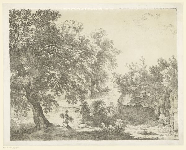 This landscape, showing a road from Ghent to Brussels, was etched by Pierre François De Noter sometime in the early 19th century. An etching is made by drawing into a metal plate with a sharp needle, then covering the plate with acid. This bites away the exposed lines, leaving an image that can be inked and printed. What is special about the etching process is the fineness of line that can be achieved. Here, De Noter uses this to great effect, creating a scene that feels both detailed and atmospheric. Look closely, and you will see the rough texture of the paper, which softens the image. The image is almost a celebration of infrastructure. But the scene is also populated by working people— a reminder that even the most picturesque landscape is also a site of labor, of transit, and of economic activity. Considering the material process of the etching alongside the image, we are invited to consider the relationship between landscape, labor, and the development of modern society.