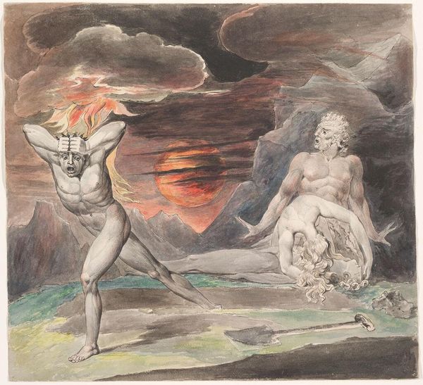 William Blake crafted this illustration to Milton's Paradise Lost, capturing a pivotal moment rife with symbolism. We see figures armed and embattled amidst serpentine forms and flames, illustrating the clash between celestial and infernal powers. The serpent, a prominent motif, coils around the scene, embodying temptation and the fall from grace. This symbol resonates across cultures, from the serpent in the Garden of Eden to ancient Near Eastern depictions of chaos. The figures wielding spears and shields invoke classical heroism, reminiscent of ancient Greek and Roman battle scenes. The fiery backdrop suggests both destruction and purification, a recurring theme in religious and mythological art. These symbols are not static; they evolve, accumulating layers of meaning as they traverse time. Blake taps into the collective unconscious, presenting a scene of profound psychological depth, where primal fears and aspirations are laid bare. The cyclical nature of these symbols is undeniable; they resurface, adapt, and continue to shape our understanding of the human condition.