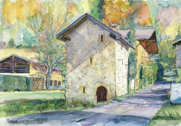 Hubertine Heijermans painted this watercolor of the House of the Dime near Ollon, a tax house in Canton Vaud. The house with its weathered facade and closed shutters, carries a certain symbolic weight, hinting at vigilance, secrets and possibly a quiet resistance. The act of closing and protecting spaces from the outside world appears in art across time, from Renaissance depictions of the Annunciation with Mary in enclosed gardens representing purity, to modern art where closed doors and windows may represent alienation. It is a motif that has evolved, shifting from sacred protection to psychological barriers. The act of collecting taxes in this scene reminds us of the biblical stories of tax collectors, often seen negatively, highlighting the tension between civic duty and personal gain. This contrast has echoes throughout art history, in Dutch Golden Age paintings showing merchants juxtaposed with moral allegories, each presenting a deep, subconscious exploration of wealth and ethics. The viewer is left to consider this building's history within this complex interplay of power, duty, and human nature.