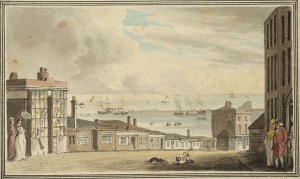 Editor: Here we have Carel Frederik Bendorp’s "Lemmer, ca. 1790," an etching with watercolor. The buildings have such charm and order, and the ships a touch of Dutch Golden Age. It seems to portray a bustling port city. I wonder what story this cityscape holds? Curator: This genre painting presents Lemmer, a coastal city. It reminds us that the Dutch Golden Age wasn't just about portraits of the elite. Works like this democratized art, bringing scenes of everyday life to a broader audience, shaping a sense of shared identity. Notice the artist's rendering, how does it create the imagery's tone? Editor: I think the use of watercolor softens the otherwise angular architectural features. It almost romanticizes daily life by removing some of the sharpness of detail. So it's presenting a Dutch town not necessarily as it *is*, but maybe as it *wants* to be seen? Curator: Precisely! That romanticization reflects the cultural values of the time – an embrace of industry and a celebration of urban centers. Etchings like these served as both records and promoters of civic pride. Consider the impact of printed images in shaping public perception and, indeed, local economies. Editor: That makes me think about the accessibility of this medium, too. I mean, prints could be reproduced and sold more widely than an original oil painting, so more people had the chance to engage with images of their towns? Curator: Exactly! So, how do you think this artwork contributed to the rise of national identity, or local identity? Editor: I suppose it gave people a sense of belonging, creating shared memories and a common understanding of place through widespread access. This has given me so much to think about. Thank you. Curator: And it is in reflecting that meaning takes shape, reminding us that art's true power lies in its public role.