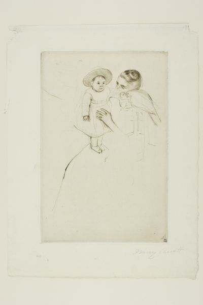 Curator: Hans Thoma, born in 1839, created this print, titled "Memento Mori," reminding us of our mortality. There's no date assigned to it currently. It's held at the Harvard Art Museums. Editor: It's unsettling, isn't it? The skeletal figure looming behind the woman, as she gazes at her reflection. It feels like a stark confrontation with vanity and its transience. Curator: Absolutely. The mirror, a symbol of self-regard, becomes a tool for this brutal awakening. The composition places death not as a distant end, but as an intimate presence, styling her hair. Editor: Death as a hairdresser! There’s a touch of dark humor here, but the core message resonates with the long tradition of "memento mori" imagery, cautioning against earthly attachments. Curator: The cultural weight of such images speaks volumes. It’s a symbol that persists, adapted across eras to challenge societal preoccupation with beauty and youth. Editor: It leaves a lasting impression, making us ponder the societal pressures of beauty, while keeping in mind the inevitable. Curator: Indeed, Thoma’s "Memento Mori" forces us to confront the human condition and think about our mortality. Editor: A grim reflection, cleverly composed.