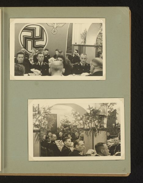 This photograph, part of the Estate of Isabel Wachenheimer, presents a chilling tableau. The stark black and white tones lend it a sense of historical weight and foreboding. Consider the composition. The figures are rigidly posed, arranged in neat rows that create a sense of order and control, yet the swastika looms large behind them, disrupting any pretense of normalcy. It's a visual signifier, loaded with meaning, dominating and dictating the scene's interpretation. The portrait adds another layer, a face representing authority, carefully positioned as the focal point. The photograph isn't just a record; it's a constructed image, designed to convey power, unity, and ideology. This image serves not only as documentation but also as a chilling example of how photography can be used to normalize the most destructive forces. It reminds us that visual forms always participate in larger structures of meaning.