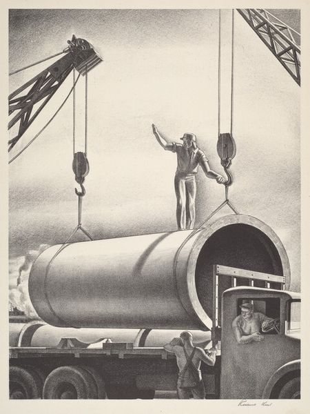 Else Thalemann created this photograph called ‘Industrie-Ruhrgebiet’ but we don’t know when, the composition has a great sense of drama and captures a moment of labour. The high contrast tones and grainy texture feel very present. The surface has a stark simplicity, an attention to the way light falls on the shapes. Look at the curve of the tank taking up the lower half of the picture and see how your eye travels up the image. It feels as though the workers are part of the tank, rather than separate from it, tiny in comparison to the huge vessel, a metaphor for labour in the industrial age. Thalemann’s photograph reminds me of the work of other German photographers of the period, like August Sander, who were similarly interested in documenting the lives of working people. It’s not just a picture, it’s a record.