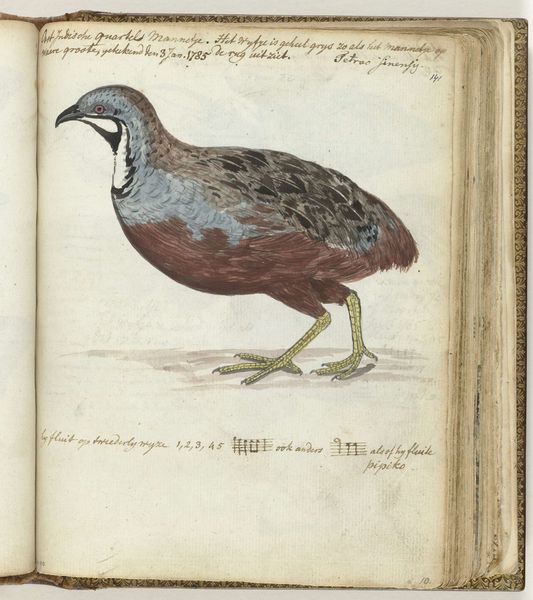 Curator: We're looking at "De Avibus. Page 212" by Conrad Gesner, dating from between 1551 and 1587. It’s a print combining woodcut and engraving, currently held at the Minneapolis Institute of Art. Editor: The stark, almost clinical quality of the bird’s rendering jumps out. The composition is centered and static, offering little in the way of implied motion or narrative. Curator: Precisely! Notice the intricate details achieved through the cross-hatching. The lines articulate the texture of the feathers and the smooth surface of its beak, but without romanticism. It's an objective study. The measured markings beside the bird invite systematic categorization. Editor: Yet, within this rigid framework, the bird emerges as a figure with considerable symbolic resonance. Birds, universally, connect the earthly and the celestial, flight as aspiration, freedom. Given this comes from a natural history text, are we perhaps seeing more than just avian taxonomy? Curator: Doubtless. Renaissance natural histories often served as symbolic repositories. Consider how Gesner meticulously constructs the bird’s form using visual elements like line and tone to underscore ideas about the natural world. Editor: Absolutely, and the text surrounding the image provides further context—perhaps cues to its symbolic significance, its place in folklore and classical knowledge. Is this heron presented here also meant to represent vigilance or perhaps patience? These qualities, historically linked to herons, might add a layer of meaning to its form. Curator: The piece definitely functions as a window into how people cataloged and understood the natural world. It invites us to consider the frameworks through which they did so. Editor: A reminder that even scientific illustration, striving for objectivity, can’t fully escape cultural and symbolic coding. Thank you, I find myself rethinking these old renderings.