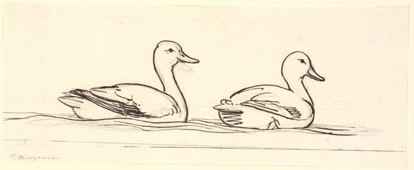 Julie de Graag made this tiny drawing of ducks in the water with what looks like pencil on paper. The marks are fluid, almost playful, and it really speaks to the simple act of looking and then quickly capturing something you see. There's such an openness to the way the image is constructed, with these confident dark lines outlining the ducks and the water, but also a kind of hesitancy in the shading – see the soft grey on the duck closest to us. I love how the drawing is framed by this bold rectangle, almost like a window onto a small, quiet world. It makes you wonder about the relationship between the artist and the subject, as though she happened upon this scene and then felt compelled to record it. It reminds me a little of some drawings by Marsden Hartley, but there's an intimacy here that feels very personal. It’s like a visual diary entry.