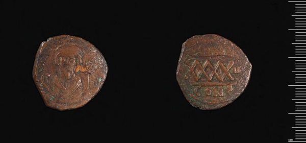 Editor: Here we have a bronze coin of Justin II, currently held at the Harvard Art Museums. It feels almost like holding history in your hand. What narratives do you see embedded in this object? Curator: This coin is not merely currency; it's a potent symbol of imperial power and identity. Consider the image of Justin II and his consort, Sophia. How does this shared representation challenge or reinforce gendered power dynamics of the time? And what about the material itself – humble bronze used to project an image of Byzantine strength? Editor: So, the choice of bronze is intentional, almost a statement? Curator: Precisely. It invites us to consider the intersection of economics, politics, and representation. What stories does this object tell about class, access, and the construction of power in the Byzantine Empire? Editor: That definitely gives me a lot to think about regarding the historical and cultural context of the coin. Curator: Indeed. Every artifact, even one as small as this, is a portal to understanding complex social structures.