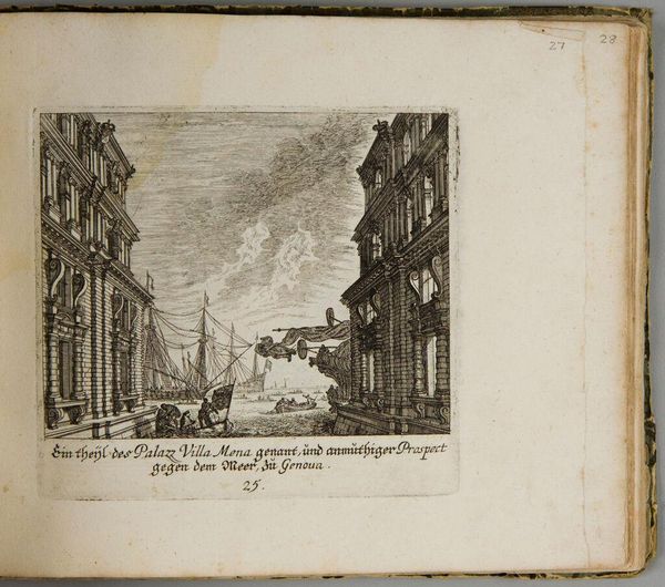 Editor: Here we see Melchior Küsel’s print, "Promenade of the Prince Mattei at Florence." The architectural details are so precise, but the tiny figures almost seem to be dancing. What catches your eye about this print? Curator: It's funny you say dancing. To me, the Prince's promenade almost feels staged, like a scene from a play. The rigid architecture contrasts with the animated figures, doesn't it? It's as if Küsel is inviting us to consider the relationship between power and spectacle. Editor: I hadn't thought of it that way, but I see what you mean. It's almost like the architecture is a backdrop for the Prince's performance. Curator: Exactly! And perhaps the artist subtly critiques that performance by making it look so artificial. It gives you pause, right? Editor: Definitely. I’ll remember that!