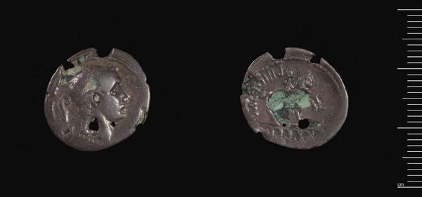 Curator: Looking at this Denarius of Antoninus Pius, I am struck by its weathered appearance, a stark contrast to its original intended gleam and detail. Editor: Indeed, the coin's current state speaks volumes about its journey through commerce and time; it is less an artifact of singular artistic intention and more a testament to social process. Curator: Precisely. Note the precise execution of Antoninus' profile, the meticulous lettering—elements meant to convey power and authority. Editor: But consider the labor involved in its production, from the mining of the silver to the crafting of the die and the striking of each individual coin. What was the environmental impact of this economic system? Curator: Valid questions. But from a formal perspective, the circular format, the relief, and the inscription form a unified and compelling visual statement. Editor: And yet, that statement shifts depending on who holds the coin and what power that person wields or lacks within the social order. Curator: A fascinating duality—the coin as a symbolic object and as a material record. Editor: Yes, each of those sides tells us a valuable story.