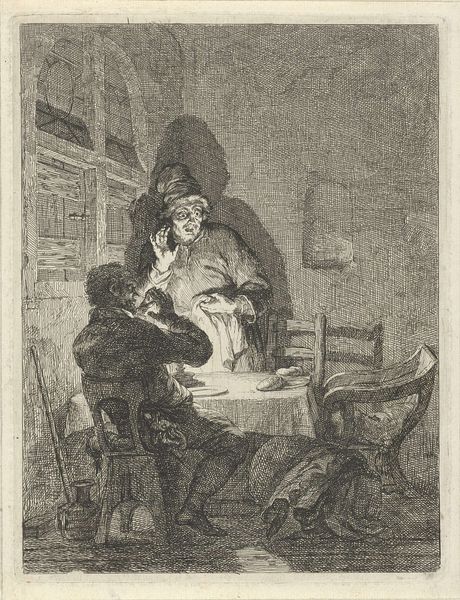 John Quidor's "Wolfert's Will" captures a moment of domestic drama with a unique eye. Here, we see a sick man in bed as a man sits in front of a table looking up and gesticulating at the man in the bed. This image evokes the theme of mortality, seen in art across time. Think of the memento mori in Dutch still life, reminding us of life's transience. Quidor’s scene presents a twist, turning serious reflection into the realm of the absurd. The gesture of the man seated at the table strikes me. Observe how it echoes the raised hand in countless scenes of annunciation, yet here it signals not divine news but earthly negotiation. This mirroring underscores a powerful force in art: symbols can evolve and invert, speaking to collective fears and desires. Quidor’s narrative approach reveals how images continually resurface, transformed by time, yet still resonant with historical echoes.