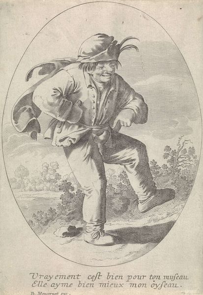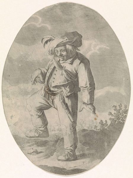 Matthias Pfenninger created this print, "Soldier Seated on a Rock" in 1764. It depicts a soldier resting, and the image's meaning arises from the culture of military service in 18th-century Europe. During this time, armies were becoming increasingly professionalized. Yet, the reality of military life was often harsh, especially for common soldiers. Pfenninger’s soldier, with his weary posture and simple garb, hints at these realities. The print captures a sense of the everyday experience of military life, rather than glorifying battle or conquest. The inscription on the rock, "Etudes des Soldats après Casterburg," suggests the print was part of a study or series, likely commissioned or intended for a specific audience interested in military subjects. The "Casterburg" reference might allude to a particular military event or location. Historians would look into military records and social histories of the period to understand the role and status of soldiers in 18th-century society and in Switzerland specifically. Through careful study, we reveal the print not just as an image, but as a window into the social conditions of its time.