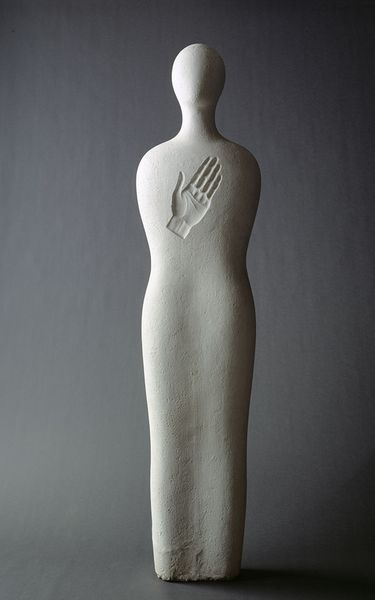 Editor: Here we have "Pop Object" by Marko Pogacnik, a mixed-media sculpture, likely using a found object. It's… odd. A glove, I think, but monumentalized and cast in, perhaps, plaster. There’s something unsettling and sterile about it. What's your interpretation of this piece? Curator: Unsettling is a key reaction here. Considering the object’s ordinariness – a glove, often used for protection – what commentary do you think the artist makes by transforming this into sculpture? Specifically, how might this gesture reflect power structures present in everyday life? Editor: Power structures? Well, the glove makes me think of labor, maybe? Like, manual work. Is the artist trying to say something about the value – or lack thereof – society places on certain types of labor? Curator: Exactly. Think about who traditionally wears such gloves, and in what contexts. Consider too, how abstraction and realism intersect here, playing on tensions of representation. Could this relate to questions of access, visibility, and agency for the working classes, perhaps in socialist Yugoslavia where Pogacnik developed his art? Editor: I see what you mean. It’s like he’s isolating and elevating this object, this symbol of work, almost forcing us to reconsider its meaning and the people it represents. But isn’t it also… empty? Devoid of the actual human hand. Curator: A potent observation! What might that emptiness signify, beyond the obvious absence? Consider broader social narratives. Who has control, whose work is valued, and whose hand truly guides our world? Editor: I never thought a glove could hold so much meaning! Curator: Art's power lies in its ability to hold up a mirror, compelling us to question the world and our place within it. It starts with just *looking.*