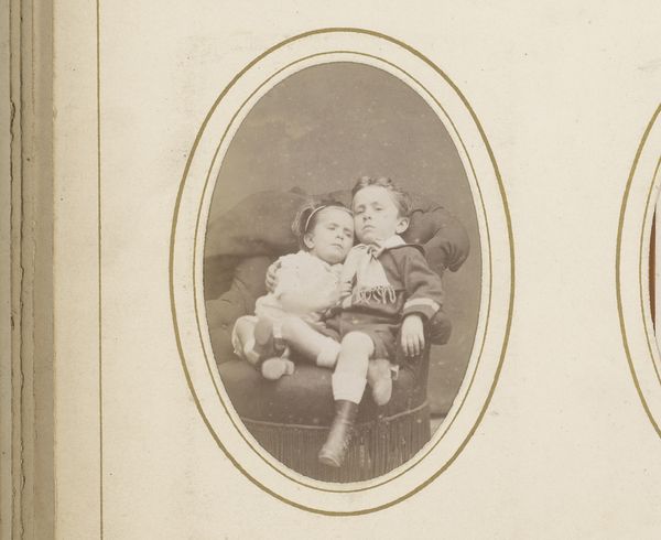 Curator: Looking at this piece, I immediately feel a sense of… melancholic innocence? The limited contrast and the solemn expressions... it's very poignant. Editor: Indeed. What you are seeing is an engraving entitled "Portret van twee onbekende kinderen," or "Portrait of two unknown children," made in 1845. It's currently housed right here at the Rijksmuseum. Curator: Unknown children… that adds to the mystery, doesn't it? I mean, what were their lives like? Were they aware they were being immortalized in this way? The artist, Joseph Schubert, captured them so formally, yet there's a vulnerability there. It feels like holding a faded photograph from your own attic. Editor: Absolutely. Schubert worked during a time when portraiture, even of children, was steeped in a very particular, formalized social structure. Children of affluent families were often presented as miniature adults, meant to convey a sense of propriety, status, and future promise. Note their clothing; their poses and presentation are all deliberately cultivated. Curator: That velvet though! And those elaborate frilly collars! The level of detail, the way it captures the light… There’s such an attentiveness and gentleness of feeling for textures that gives the picture a painterly dimension beyond the engraving. Editor: Yet it’s still important to acknowledge what these images omit. What about the working-class children? The children of color? Whose stories don’t appear within these archives? Art always tells us as much about what is excluded as it does about what is included. Who had the power to be recorded, and whose existences were considered less deserving of preservation? Curator: That's so true. It reminds me of rummaging through an old dress-up chest—the sweetness is laced with a touch of loss. But it does leave room for us to dream stories into their eyes, filling in what’s been left out, finding echoes across time. What kind of narrative, what kind of action would they partake in had they lived a different, more acknowledged life? Editor: And ultimately, asking ourselves how we can be more critical, active listeners in the archives and museums of today. Recognizing the limitations of whose stories are represented in the collections will make us be conscious storytellers as well. Curator: What a wonderful perspective. I am always enthralled when new and old voices convene, making way for dialogue.