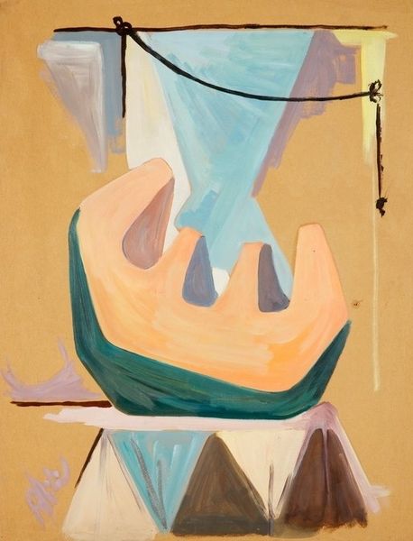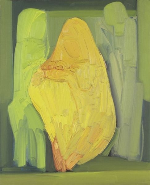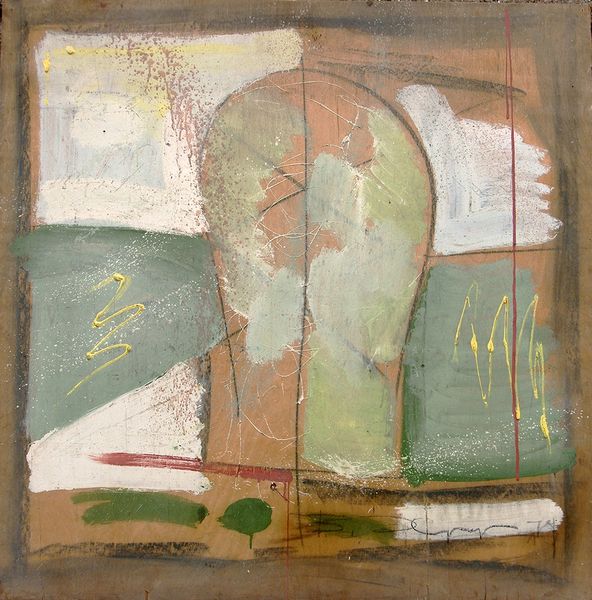 Vasiliy Ryabchenko created this untitled painting with oil on canvas, and what strikes me most is the way the forms emerge, not as fixed objects, but like fleeting visions. Ryabchenko's color palette, dominated by soft pinks and muted blues, creates a dreamlike atmosphere. Look closely, and you'll notice how the paint is applied in layers, almost scrubbed onto the canvas, allowing the texture to play a vital role. The central figure, a sort of doubled caryatid, is rendered in cool blues, which contrast with the warmth of the surrounding pink ground. The brushwork is particularly visible here, with the artist allowing the strokes to define the forms and add a sense of movement. See how the seated figure at the base of the fountain is built up with multiple layers of paint, each stroke contributing to a feeling of depth. I'm reminded of the dreamlike imagery of Odilon Redon, who also explored the boundaries between reality and imagination. Ryabchenko invites us to embrace ambiguity and find our own interpretations within this visual poem.