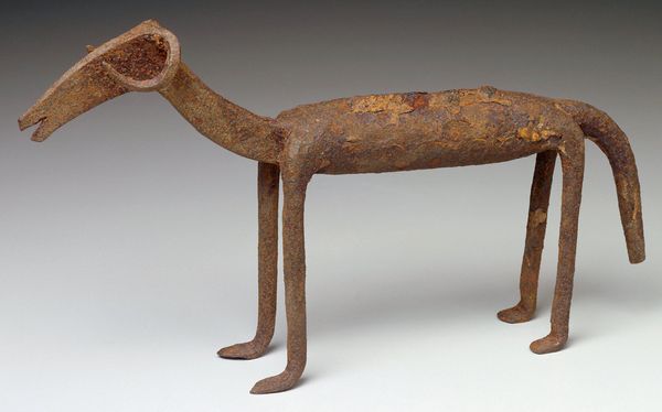 Curator: Here we have what's titled "Facsimile of Small Lion Tankard," a Lower German piece, circa 1540, by an unidentified maker. The dimensions are roughly 30 by 41 centimeters. Isn’t he something? Editor: He's magnificent! The scale-like pattern on the body, those stylized tail curls… It feels regal, almost heraldic, but also a little…ferocious? A beautiful tension. Curator: Consider the context: a tankard, a utilitarian object, elevated through elaborate craftsmanship. We see the social status of the owner reflected in the skilled labor and the cost of materials involved. Editor: Absolutely. It's like the artist is saying, "Even our drinks deserve a touch of the sublime.” I can just imagine the conversations that tankard witnessed! Curator: A true confluence of the functional and the artistic, speaking volumes about consumption and class. Editor: And now, a silent guardian of history, reminding us that even everyday objects can roar with meaning.