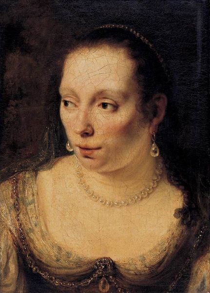 Editor: This is Frans Hals' "Portrait of a Young Woman," painted around 1660. The sitter's direct gaze makes me feel like I'm interrupting a private moment. What can you tell me about this work? Curator: The direct gaze you mention is indeed a powerful element, a hallmark of Hals' portraits, capturing an immediacy and psychological presence. Look closely at her clothing and the restrained palette. Does this suggest anything to you? Editor: The simplicity makes me think of a certain social status or perhaps religious affiliation, something humble. Curator: Precisely. The muted tones, the white cap and modest dark gown, reflect the somber attire often associated with Dutch Calvinist beliefs. However, see the delicate lace trim and gold pins holding the cap? Those suggest a quiet prosperity. Editor: Ah, a balance between piety and affluence. But what about her expression? It's not stern, more… contemplative. Curator: Consider what a portrait meant in 17th-century Dutch society. These images were about presenting a certain version of oneself, reinforcing status and conveying virtue. Her contemplative expression is not just a personal characteristic; it’s a symbolic attribute. Editor: So, her expression and clothing are carefully chosen to project a specific image? It's fascinating how much a single portrait can communicate. Curator: Exactly. Hals was a master at embedding these subtle, yet significant details. These details point toward an intricate understanding of Dutch cultural values and aspirations that endure. Editor: I see that now. Looking again, I notice all these seemingly small details tell a complete and intriguing story. Curator: It shows the weight and richness an image carries over time, far beyond a mere likeness.