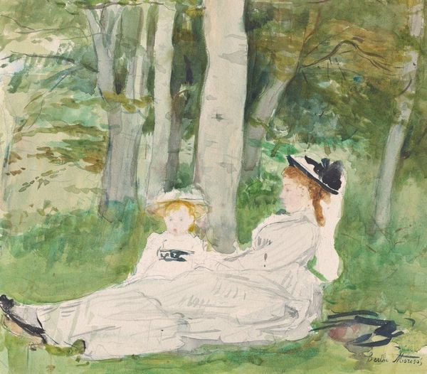 Winslow Homer made "Girl Seated In A Grove" with watercolor in 1880. Homer used watercolor to create the light and airy scene we see here. Watercolor is a very delicate medium. Mistakes are difficult to correct, and the artist has to be very deliberate with each stroke. Notice how he builds up layers of color to create depth and texture, using the white of the paper to create highlights. The effect is one of dappled sunlight filtering through the trees, and the woman’s dress is adorned with the same diffused light. Watercolor painting was often considered a 'feminine' pursuit at this time, linked to leisure and recreation. In this context, Homer challenges the traditional hierarchy of artistic mediums, elevating watercolor to create a complex and evocative scene, and inviting us to appreciate the skill and artistry involved in its making. In the end, the artwork challenges the social context of the artist, as well as of the woman he depicts.