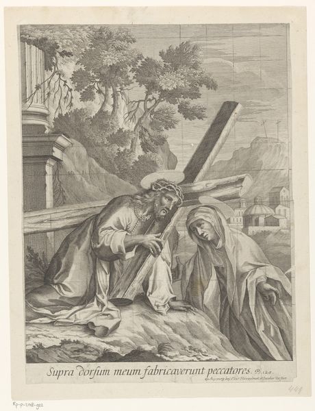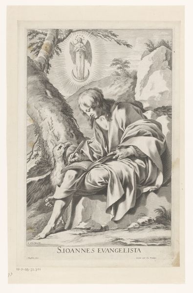 Pedro Pascual Moles created this print, "H. Gregorius trekt zich terug in een grot," in the late 18th century. Moles was working in a society deeply shaped by religious norms and expectations, and this print invites us to consider the intersections of religious devotion and personal experience. The image portrays St. Gregory retreating to a cave, a setting symbolizing both isolation and spiritual seeking. Moles captures the saint's emotional state, his face a mixture of contemplation and perhaps even conflict, as he is pulled toward the cave. The figures who attempt to draw him away from his devotion underscore the tensions between worldly duties and spiritual pursuits, something which resonated with people living in the 1700s. What does it mean to choose a life of solitude and contemplation in a world that demands action and engagement? This is what this print asks of us. It serves as a mirror reflecting society's ongoing negotiation between faith, identity, and the individual's place within the larger community.
