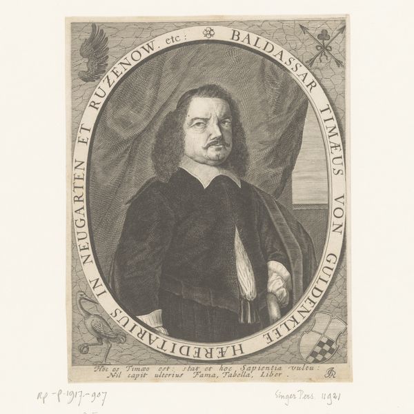 Jonathan Spilsbury's "Portret van John Bunyan," is a mezzotint, presenting us with a study in tonal contrasts. The composition is tightly framed, focusing primarily on the figure of Bunyan himself. The mezzotint technique allows for rich textures; observe how light subtly catches on Bunyan's face and the fabric of his coat, creating a tactile impression. The tonal range—from deep blacks to soft grays—gives the image depth. Bunyan is depicted holding a book, its edges sharply defined against the softer gradations of the background, a semiotic representation of knowledge. Spilsbury’s approach emphasizes the play of light and shadow to define form, rather than relying on line. The print engages with contemporary philosophical interests in perception and representation, inviting us to consider how meaning is constructed through visual cues. The soft, almost blurred edges, speak to the medium's capacity to evoke a mood as much as to depict a subject. This piece functions not only as a portrait but as a statement on the power of visual art to capture and convey aspects of the human spirit.