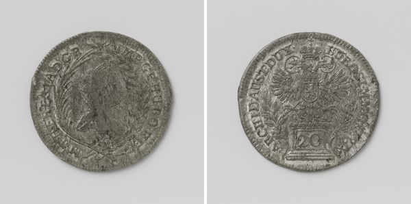 This silver medal, commemorating Lodewijk II and Maria of Hungary, was created around 1526 by Michael Hohenauer. The circular form immediately presents a sense of completion and unity, perhaps reflecting the intended wholeness of the royal couple's legacy. The profiles are stark, yet delicately rendered, employing a shallow relief that captures subtle nuances of their features. The use of silver, with its muted sheen, imbues the medal with a sense of solemnity and timelessness, appropriate for a memorial object. Notice how the inscription encircles the portraits, framing them within the confines of memory and history. The composition adheres to a classical structure, yet there's a certain austerity that disrupts any potential for excessive idealization. The medal functions as a semiotic device, employing recognizable symbols of royalty within a format designed for mass production and distribution. Yet, it is also a testament to individual craftsmanship. The balance between standardization and personalization invites us to reflect on the nature of power. This small object raises profound questions about representation, memory, and the enduring power of art to shape historical narratives.