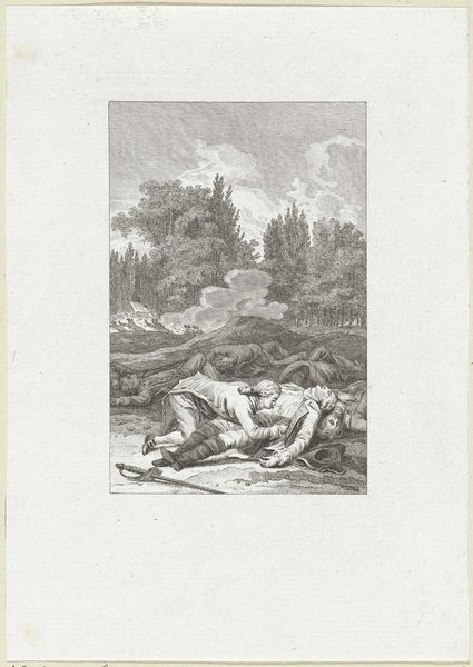 Reinier Vinkeles etched this image depicting Julius Mansuetus being slain by his own son. See how the fallen father lies prostrate, his sword cast aside, while his son recoils, arms outstretched, a gesture of horror or perhaps disbelief. This gesture echoes through time. Think of the figures in classical tragedies, or even in Renaissance paintings depicting moments of intense emotional and psychological turmoil. It's a universal expression of shock, grief, or the sudden realization of a terrible deed. Such motifs are not merely artistic conventions; they are deeply embedded in our collective consciousness. The pain of patricide, the shattering of the natural order, resonates across cultures. Vinkeles taps into this primal fear, reminding us of the cyclical nature of history, where old myths resurface, and ancient sorrows are re-enacted. The image captures a moment frozen in time, but its emotional weight transcends the centuries.