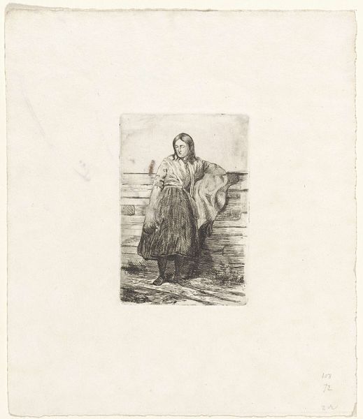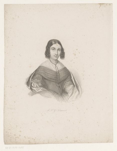 Curator: This captivating drawing at the Rijksmuseum is titled "Portrait of a Young Lady with a Bouquet in her Hands," created by Henricus Wilhelmus Couwenberg sometime between 1830 and 1845. It's rendered in pencil, which gives it a certain softness. Editor: The delicacy of the lines gives it such an intimate, almost wistful feeling, doesn't it? And the young woman’s gaze is so direct, yet somehow elusive. It feels as if she holds secrets. Curator: Absolutely. That blend of directness and elusiveness is characteristic of Romantic portraiture. Note how the flowers serve as more than just adornment; they’re symbolic. They represent beauty, of course, but also fragility, and perhaps even fleeting youth. This was an era intensely preoccupied with mortality. Editor: Right, the cult of sensibility. The public exhibition of private feelings… And I imagine, within the context of the Dutch Golden Age's emphasis on meticulous detail, the choice of pencil alone must have seemed radical, almost defiant, emphasizing emotional tone over polished execution? Curator: Interesting. Perhaps it’s less a radical departure and more a skillful adaptation. The Romantics still sought to capture a likeness, but the soft pencil work lent an air of sentimentality that aligned with their aesthetic values. The lace details around her shoulders, too, are exquisite despite the simple medium, pointing toward her social standing. But I wonder about the psychological import of such precise depictions of female beauty at this moment. Editor: It definitely plays into the construction of idealized femininity during the early 19th century, as women's roles were being so heavily debated. A portrait like this reinforces certain standards, offering both admiration and subtly enforcing a prescriptive vision. Is she powerful, because of her beauty, or limited by it? Curator: That is a perfect question. And by the mid-19th century, we see this debate playing out visually more and more overtly. The lady holds flowers; the image is quite literally in her hands. It reflects something we collectively long for and have reason to suspect, even fear. Editor: It is always a reminder that what we call art history is really the history of how humans, in relation with objects, come to shape ideas about each other. Curator: Precisely! The art continues to question and reflect, just as this young lady questions back to us across time.
