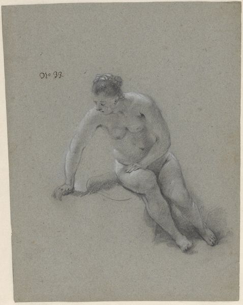 This drawing, "Seated Woman", was made in the 17th century by Govert Flinck using black and white chalk on blue paper. Here, the material is integral to the effect. The toned paper provides a middle ground, allowing Flinck to build up form through contrasting marks. Notice how the white chalk creates highlights on the woman's skin, suggesting volume and the fall of light. The black chalk, conversely, defines the shadows, adding depth and contour. The grain of the chalk lends the image a soft, almost hazy quality. In Flinck's time, drawing was not just about capturing likeness; it was a process of intellectual engagement and refinement. This study exemplifies the skilled traditions that artists like Flinck engaged with, reflecting a broader interest in human anatomy and classical ideals of beauty. The artist's labor is evident in every stroke, and speaks to a culture in which the handmade was central to creative practice. Recognizing these material and social dimensions allows us to appreciate this artwork beyond its representational content, and as a document of skillful making.