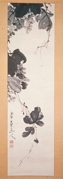 Editor: We’re looking at “May (Kusudama- Medicine Balls),” a watercolor on paper hanging scroll, created around 1910 by Suzuki Toshimoto. I'm struck by the delicate rendering and muted palette. It feels so restrained, yet intentional. What jumps out to you when you consider this piece? Curator: I am drawn to consider the ‘Kusudama,’ or medicine ball, in this artwork. It isn't merely decorative. It's constructed. Consider the labor involved in assembling those delicate paper flowers, sewing them together, imbuing it with not just beauty, but perhaps ritual significance relating to health. And what materials would be readily available to Toshimoto, living as he did? What does the accessibility, or lack thereof, of these materials suggest? Editor: That's interesting. I hadn't considered the "making of" so carefully. I was just focused on how pretty it is! You're making me think about how the creation of this Kusudama may not have been just for art, but had deeper roots. Curator: Exactly. Think of the cultural context too. Japan in 1910 was going through tremendous change and modernization. The handmade nature of the kusudama could be seen as either resisting industrialization or co-existing alongside it. How might social pressures of this time have impacted his work and the use of such materials? Editor: So, even the choice of materials, watercolor on paper, carries meaning in this historical context? Curator: Absolutely. It challenges the Western notions of high art, drawing our attention to materials that were accessible. Toshimoto pushes against the perceived boundaries between craft and ‘fine’ art, giving this Kusudama more visibility. Editor: I never would have thought to look at a seemingly simple painting like this with such attention to material and labor. It gives me so much to consider moving forward. Curator: Indeed. It pushes us to consider not just the final artwork, but also the process, the hand that made it, and the culture that shaped both.