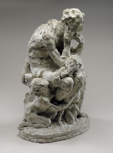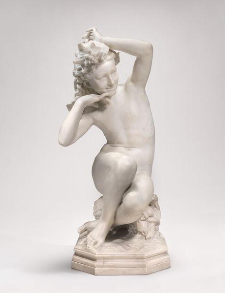 Editor: This porcelain sculpture, "Europa and the Bull," was created by Saint James's Factory between 1744 and 1764. The smoothness of the porcelain gives it a dreamy quality, but it feels very delicate, almost fragile. What can you tell me about it? Curator: The creation of this piece lies deeply in material conditions. Soft-paste porcelain, like this, was very difficult to fire successfully at this time. The high failure rate made each surviving piece valuable and a testament to the skill, and luck, of the makers. Editor: So, its value comes from more than just the aesthetic representation of mythology? Curator: Precisely. This wasn't just high art. The workers in the factory, who prepared the clay, shaped it, and fired it, engaged in intense physical labor, driven by demand for luxury goods among the elite. The whiteness of the porcelain, achieved through careful manipulation of materials and firing processes, was highly prized and suggestive of status. The decoration too, probably undertaken by different workers, further elevated the object's commodity value. Does knowing this change your view? Editor: It definitely shifts my perspective. I was focusing on the narrative, the art-historical context. I was unaware of how the socio-economic aspects during that time play into the value and how it was produced, impacting its very existence today. So this isn't just an artwork; it's a product of labor, resources, and consumerism. Curator: Exactly. And remember, the Rococo style itself reflects an aristocratic taste for the opulent, driven by a consumer culture emerging at the time. These delicate porcelain sculptures, depicting mythological scenes, represent a significant link between labor, class and materiality. Editor: That gives me a completely different framework to see it. I really appreciate that alternative viewpoint! Curator: My pleasure, considering material conditions of artmaking allows us to grasp the nuances of class, labor, and value that are interwoven into such art object, shaping its meaning for us today.