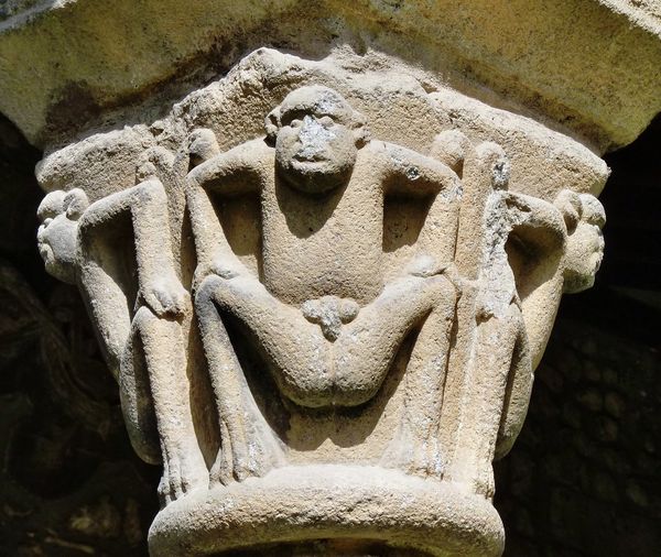 Editor: Here we have a Romanesque capital from Trier Cathedral in Germany, dating back to around 1200. Looking at the carved stone, I'm immediately drawn to the intricate geometric and organic forms. What do you see in this piece? Curator: From a formalist perspective, it is imperative to analyze the arrangement of forms and lines that create the overall composition. Note the layering – the stylized acanthus leaves at the bottom giving way to the geometric band above, capped by the swirling, almost abstract volutes at the very top. The artist uses a limited set of shapes, yet achieves remarkable complexity. What structural relationships strike you as significant? Editor: Well, the repetition of the leaf motif definitely creates a sense of rhythm and stability. But the shift to those almost unruly volutes at the top disrupts that. It prevents the carving from being too predictable. Curator: Precisely! It is this dynamic tension between order and deviation that gives the capital its visual interest. Observe, too, how the light plays across the sculpted surfaces. Notice the way the artist modulated depth to achieve distinct tonal contrasts and guide the viewer's eye, generating depth within the tight picture plane. The texture itself adds another layer of meaning. Editor: I never thought about texture as meaning before. Curator: It is not merely about the feel of the stone, but about the artist's intervention in shaping it. Do you feel you have understood something new about art after looking at the composition? Editor: Absolutely! Seeing how form and structure can create dynamic tension and meaning is a great insight. I’ll definitely look at architectural sculpture differently now, not just as ornamentation but as visual storytelling. Curator: Indeed. Focusing on the elements of the image, one appreciates the architectural structure, its geometry, texture and light. One is now able to understand how each plays a vital role in experiencing and understanding artwork.